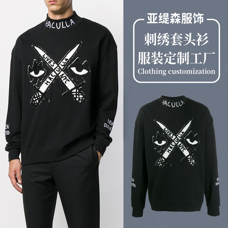 カスタム黒の厚手の綿のコイルのガードルの綿の頭の作業服のカジュアルな長袖の丸首のガードルのカスタム刺繍