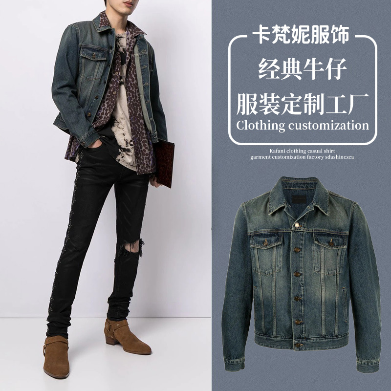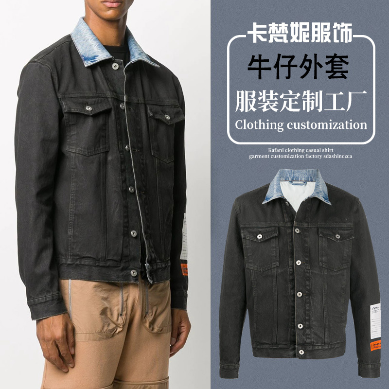 加工カスタムプリントデニムジャケット煙グレー高品質ジッパーファッションファッション男性デニムジャケットカスタマイズ