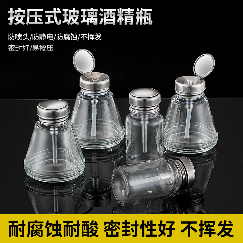 ガラス製アルコールボトル、プレス式アルコールボトル、専用ネイルリムーバーボトル、洗浄液ボトル、プレス式ボトル