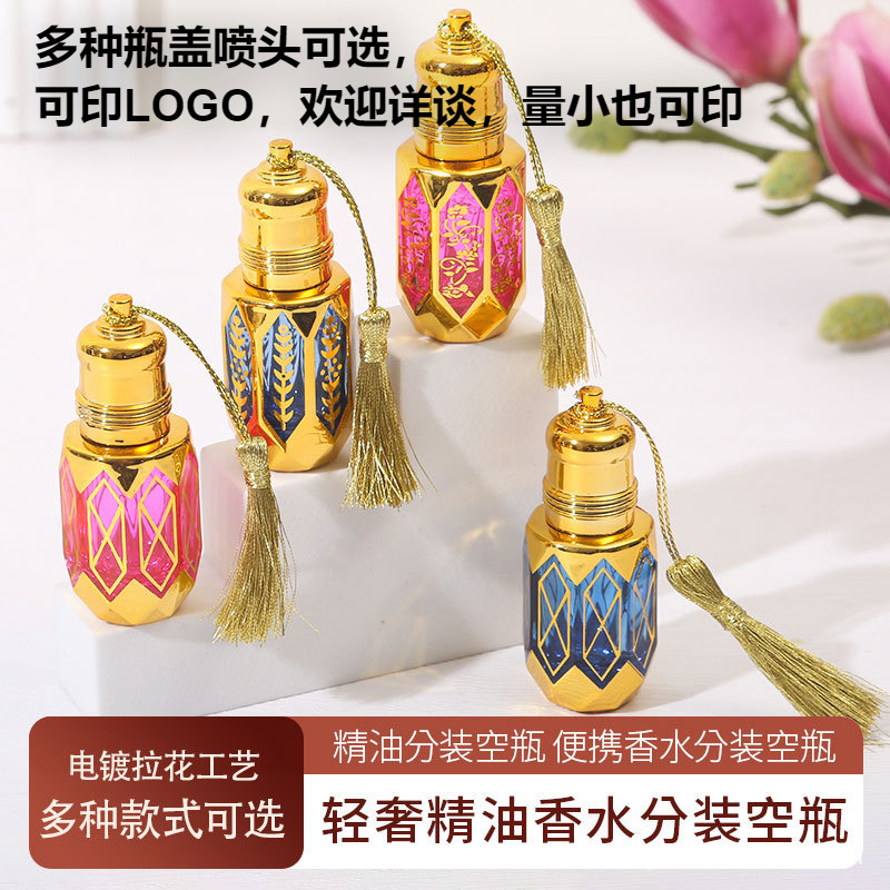 10mlエッセンシャルオイル分注ボトル金色UVメッキ香水分注ボトル空瓶箔押しガラスビーズ空瓶サンプルボトル