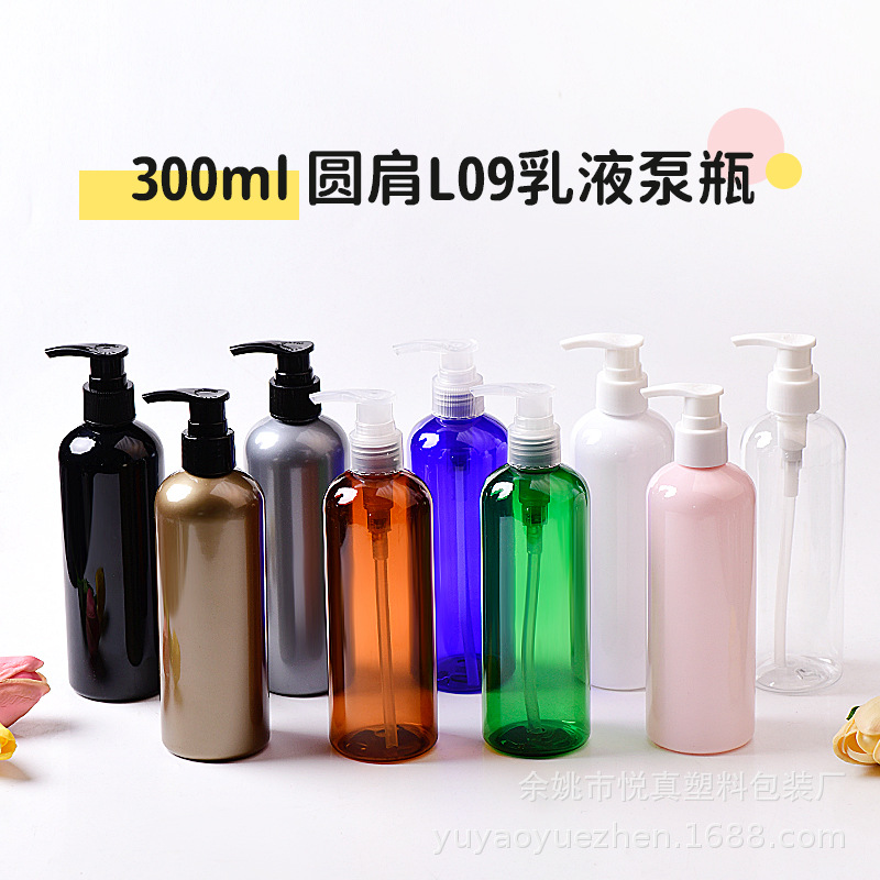 300ml透明ラウンド肩プッシュローションシャンプーボトルコンディショナーボディソーププッシュプッシュボトルプッシュポンプ