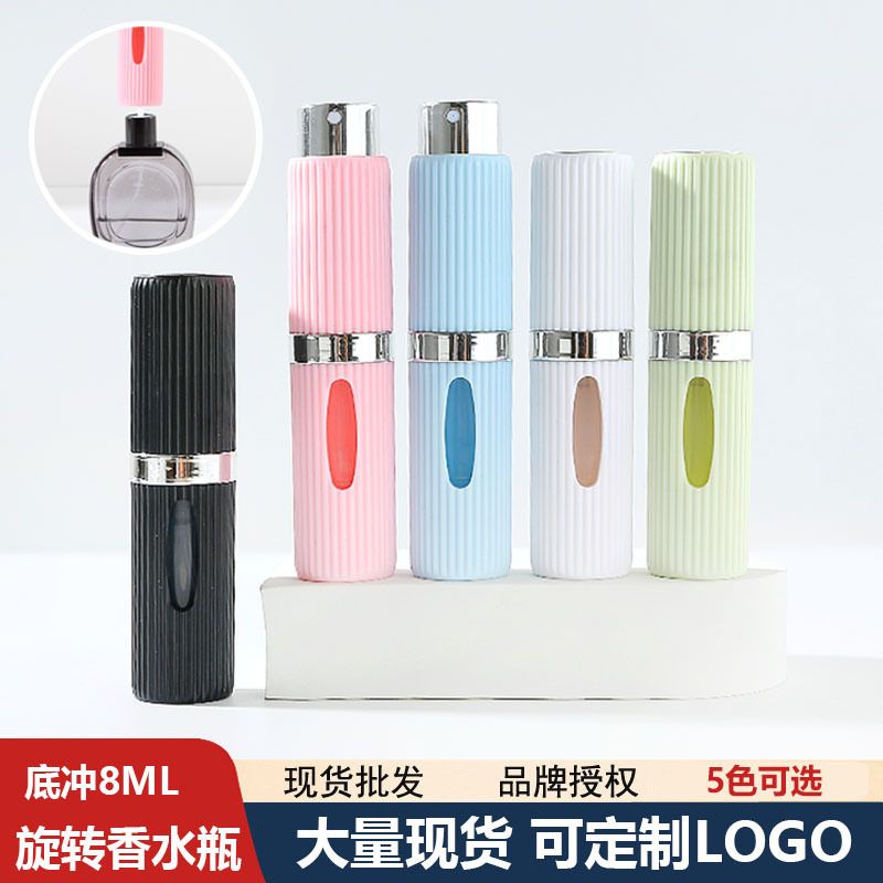 スポット8ml回転底詰め替え香水ボトル、セルフポンプスプレーボトル、ABSプレス底詰め替え香水ボトル