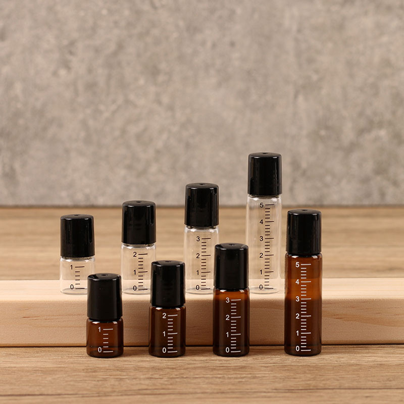 1-5mlボール分注ボトルスケール付きガラス携帯旅行小型分注香水精油上薬空ボトル