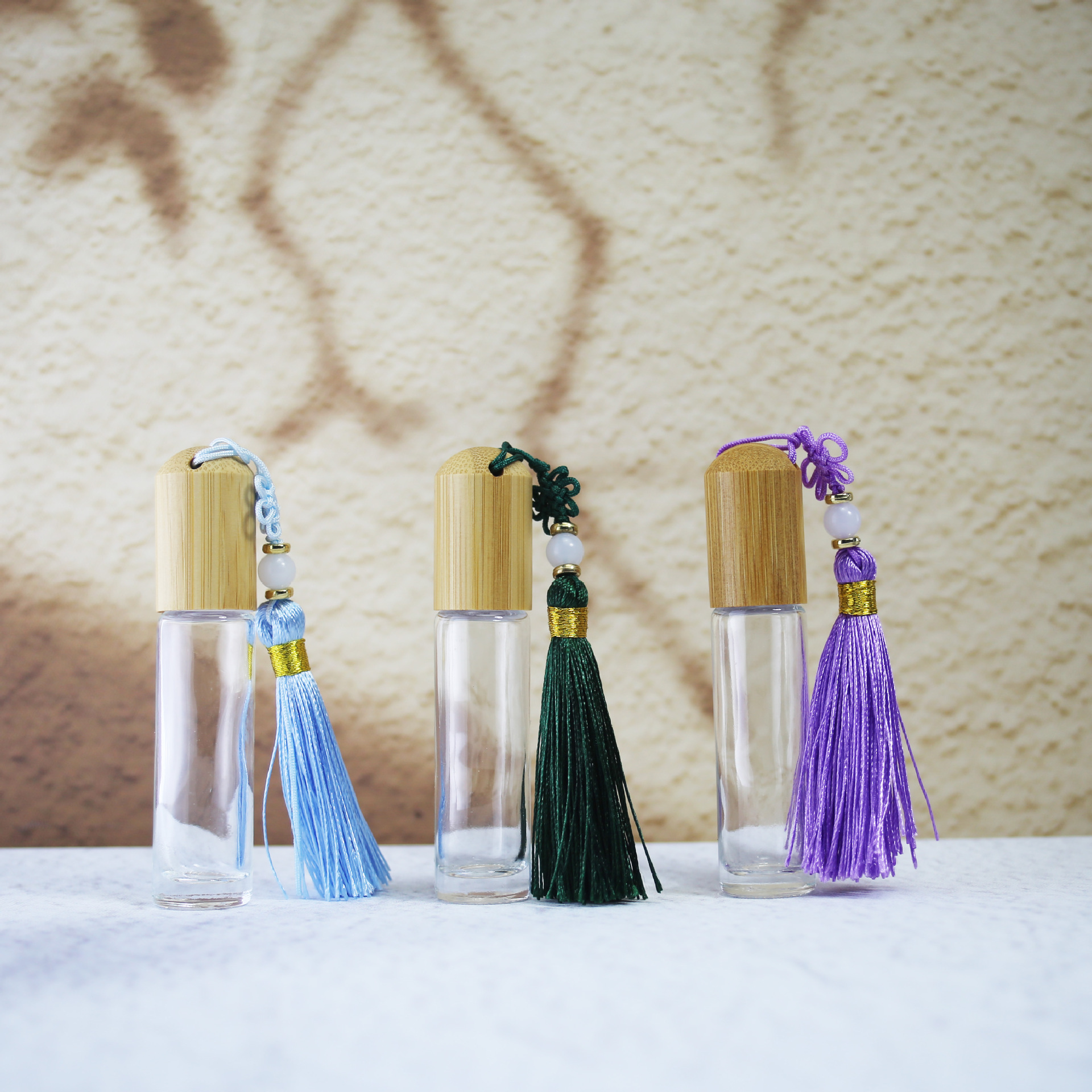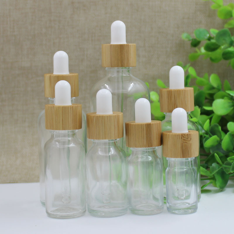 透明エッセンシャルオイル分注ボトル竹リングプラスチックヘッドキャップ調合ボトル5-100mlガラススポイトボトル化粧品包装ボトル