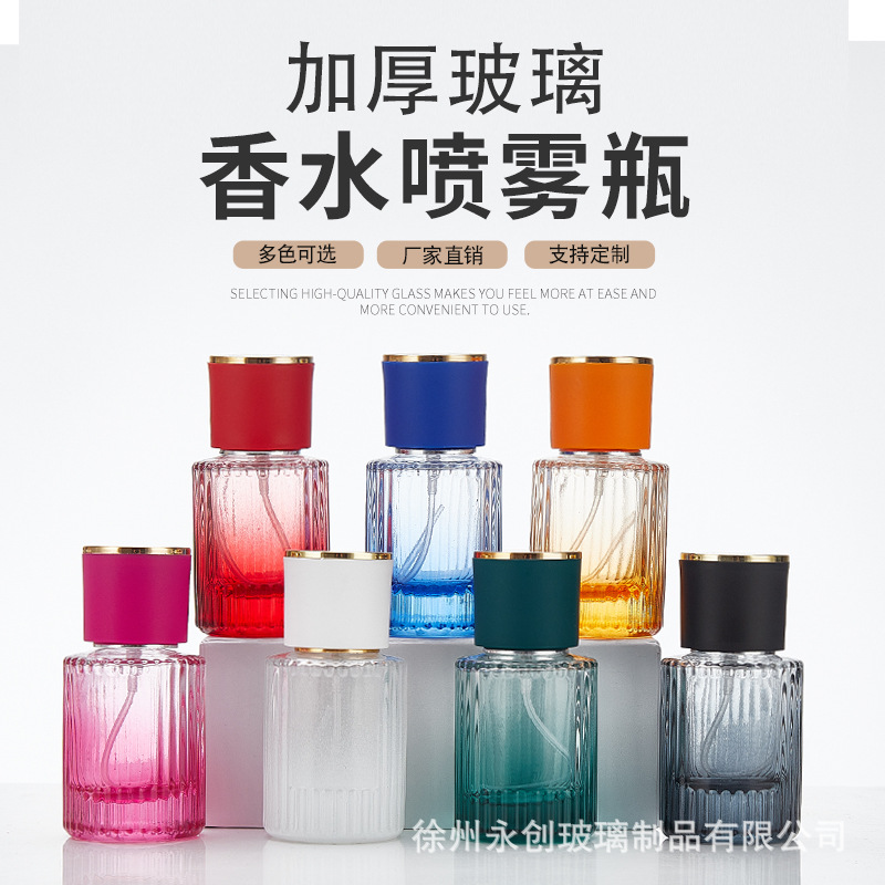 スポット香水分注ボトルプレススプレー30ml携帯旅行円柱縦紋グラデーション香水空瓶