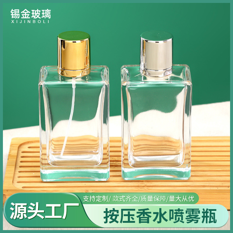 スクエア香水瓶100ml透明品スプレーボトル化粧品プレス分注ボトル香水ガラス空ボトル