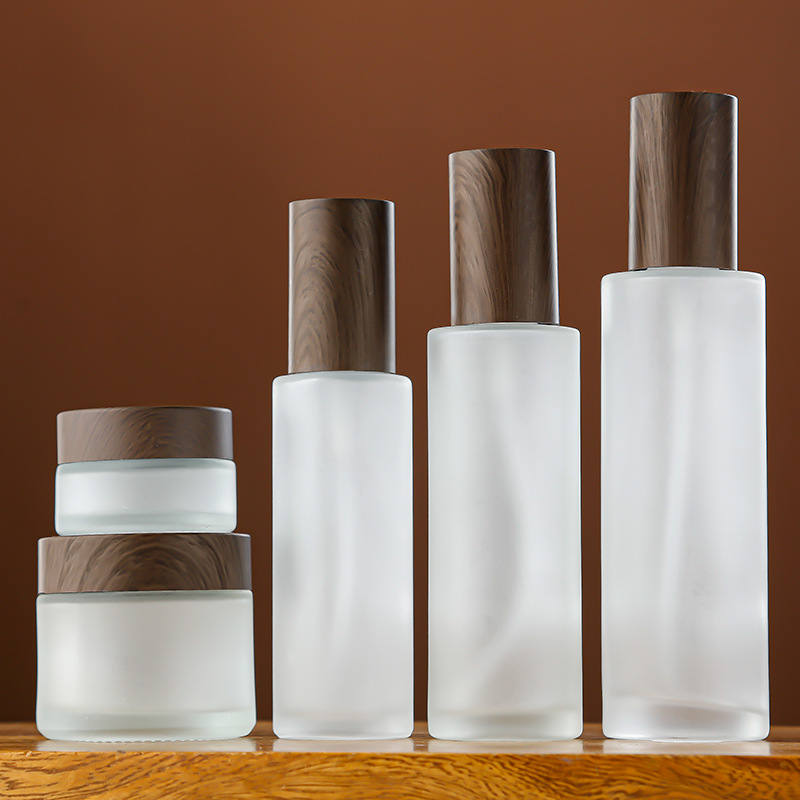 現物茶色木目蓋蒙砂ガラス瓶乳液瓶クリーム瓶クリーム缶化粧品分注瓶卸売り