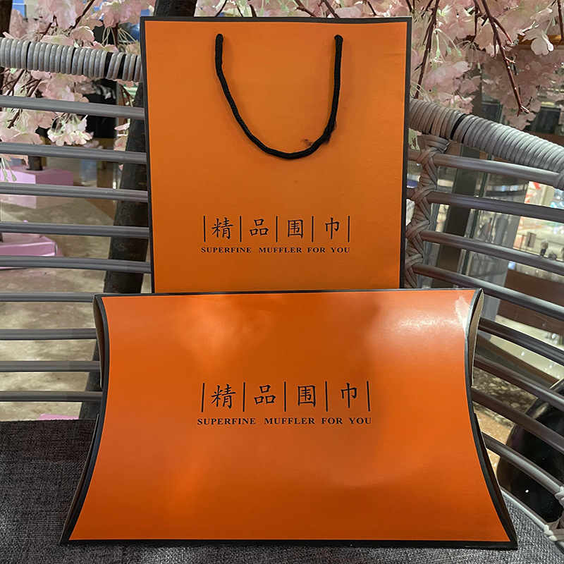 返品しない ~ マフラー包装ギフトボックスセットオレンジ色の空箱手提げ袋2点セットシルクタオルストール高級