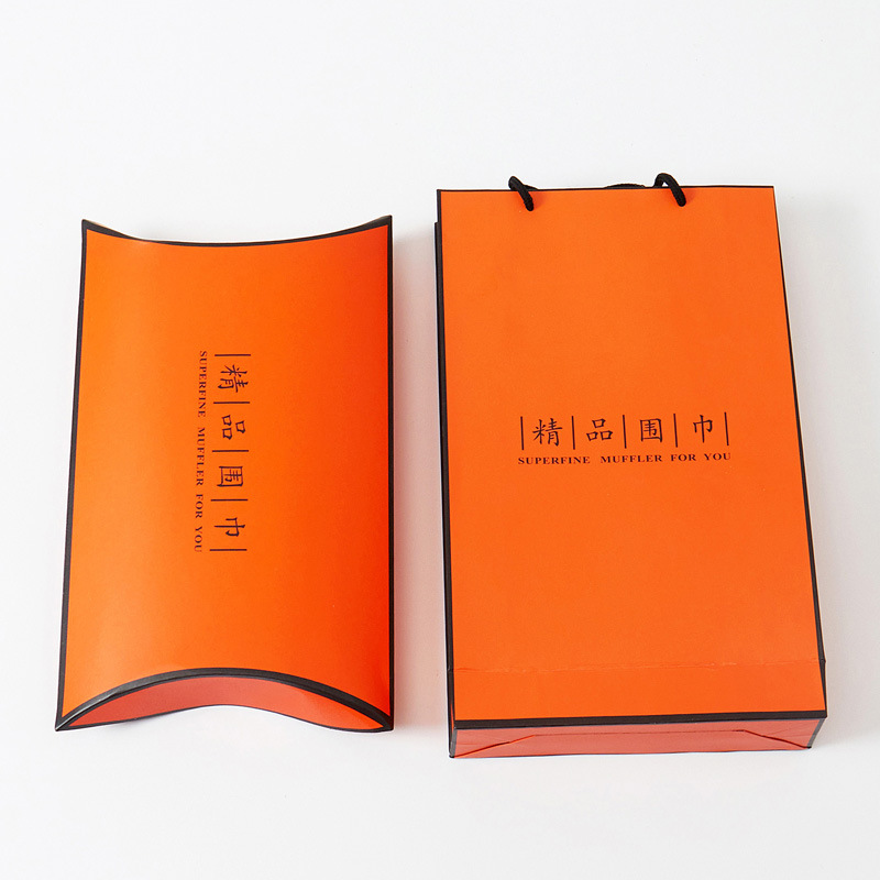 シルクスカーフ シンプル オレンジ色 包装ギフトボックス 上蓋付き ハンドバッグ型ボックス ロゴ入り オレンジ色 ギフトスカーフ ギフトボックス