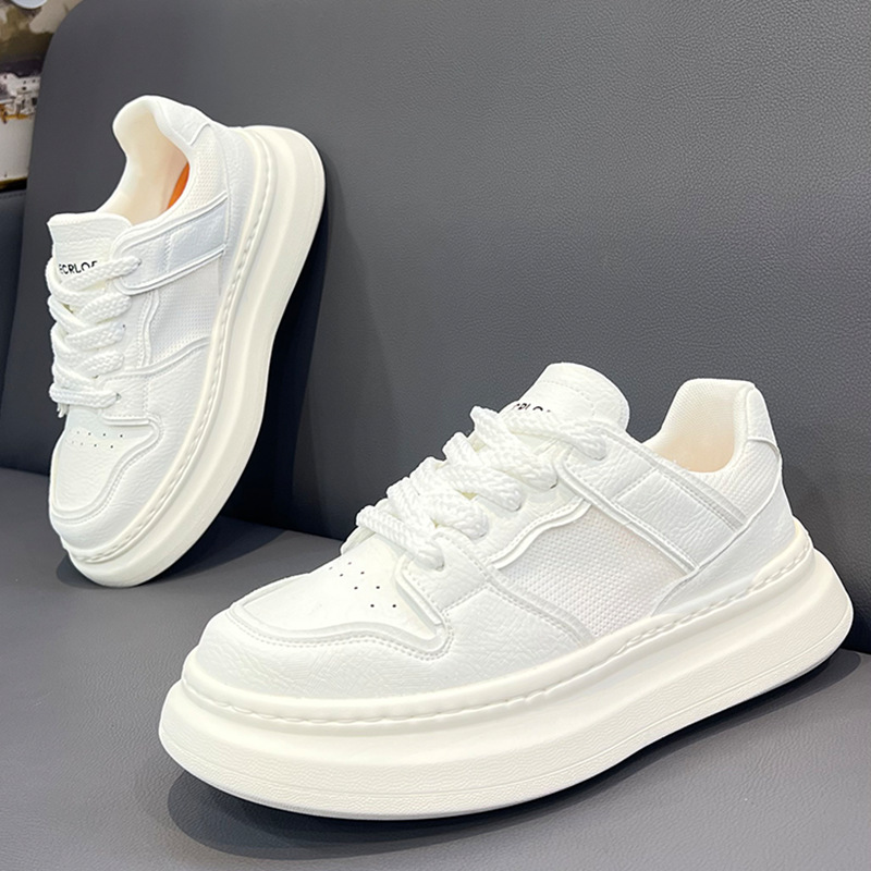 新商品の現物の頭の層の牛革の板の靴の通気性の運動の百合のエアクッションのファッション的なカジュアルな白い靴の厚い底の男