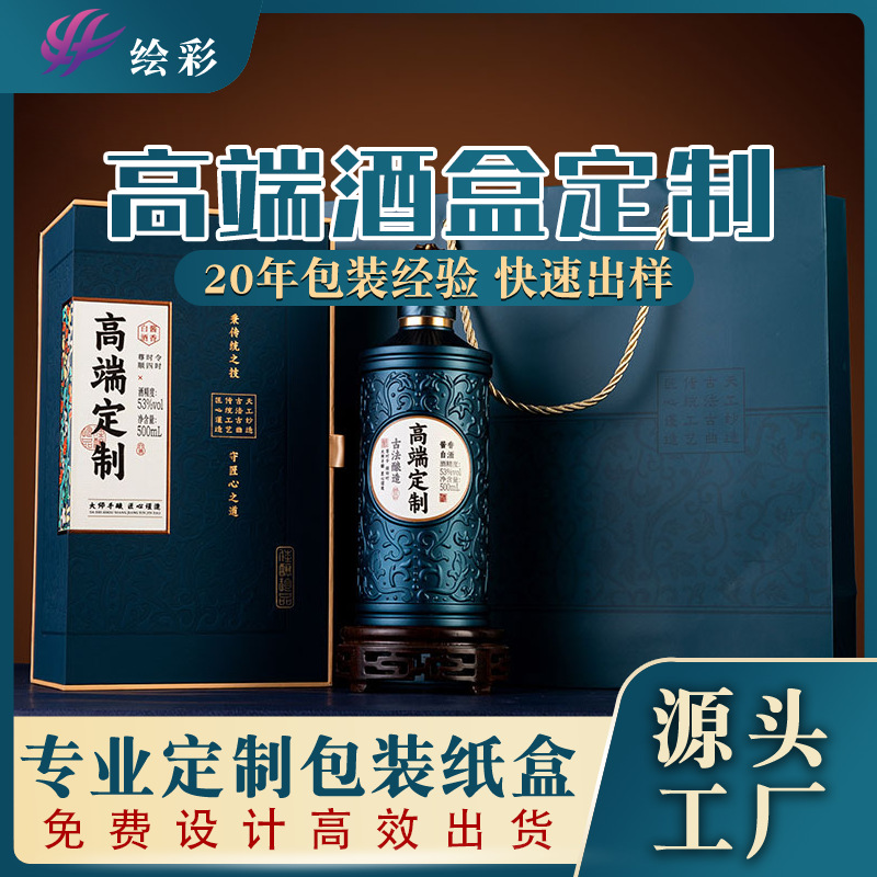 高級景泰藍中高級白酒包装箱小ロット注文シングル本箱注文黄酒カラー箱注文注文