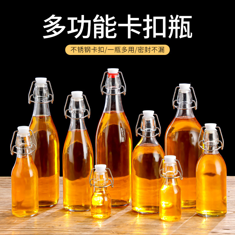 楽ボタンガラス瓶透明密封円形角型クリップガラス瓶ジュース酵素酒瓶自醸造果酒白酒