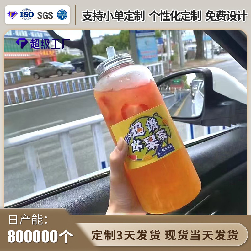 PET1000ML 飲料ボトル密封された大容量ラウンドボトルフルーツティーカップ 1L シーズントゥイスト同じスタイル透明使い捨てミルク