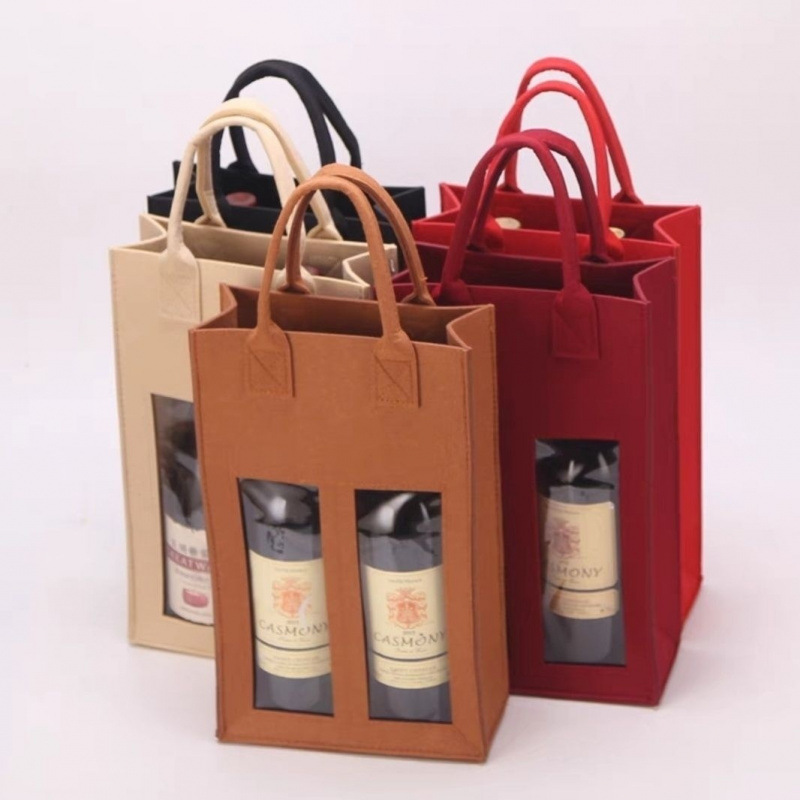 フェルトワインバッグ2つのフェルト収納バッグ大容量ワインフェルト手提げ収納バッグ