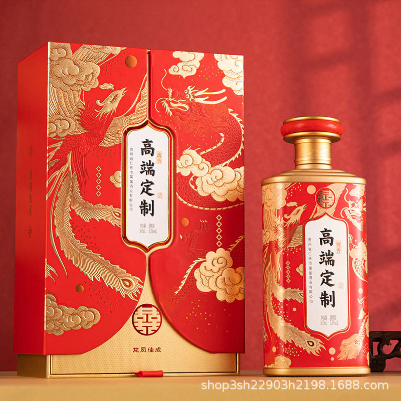 Longfeng Jiacheng 結婚式婚約高級酒 500 ミリリットルギフトボックス空のワインボトルフルセット印刷可能なロゴ