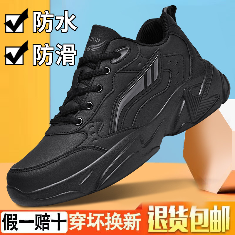 男性靴秋の新型防水皮面スポーツシューズ通気レジャーランニング靴黒作業靴男代発