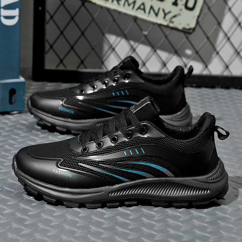 男性用防水・滑り止め作業靴、耐摩耗性、黒のスニーカー、通気性、秋の作業用安全靴、トレンドのカジュアルシューズ、多用途
