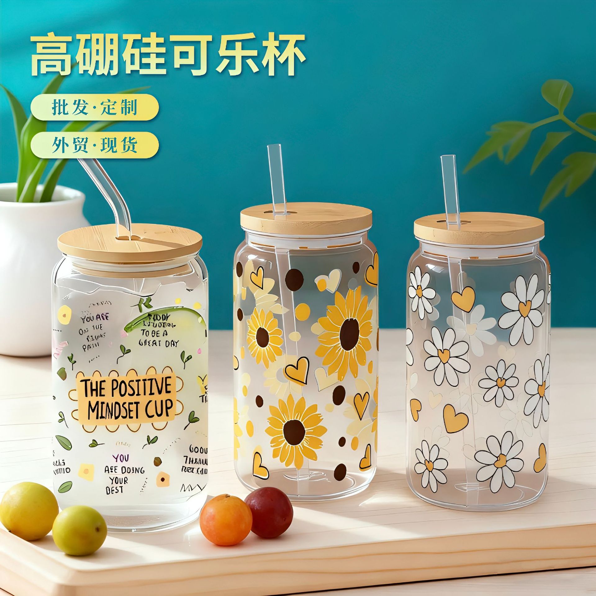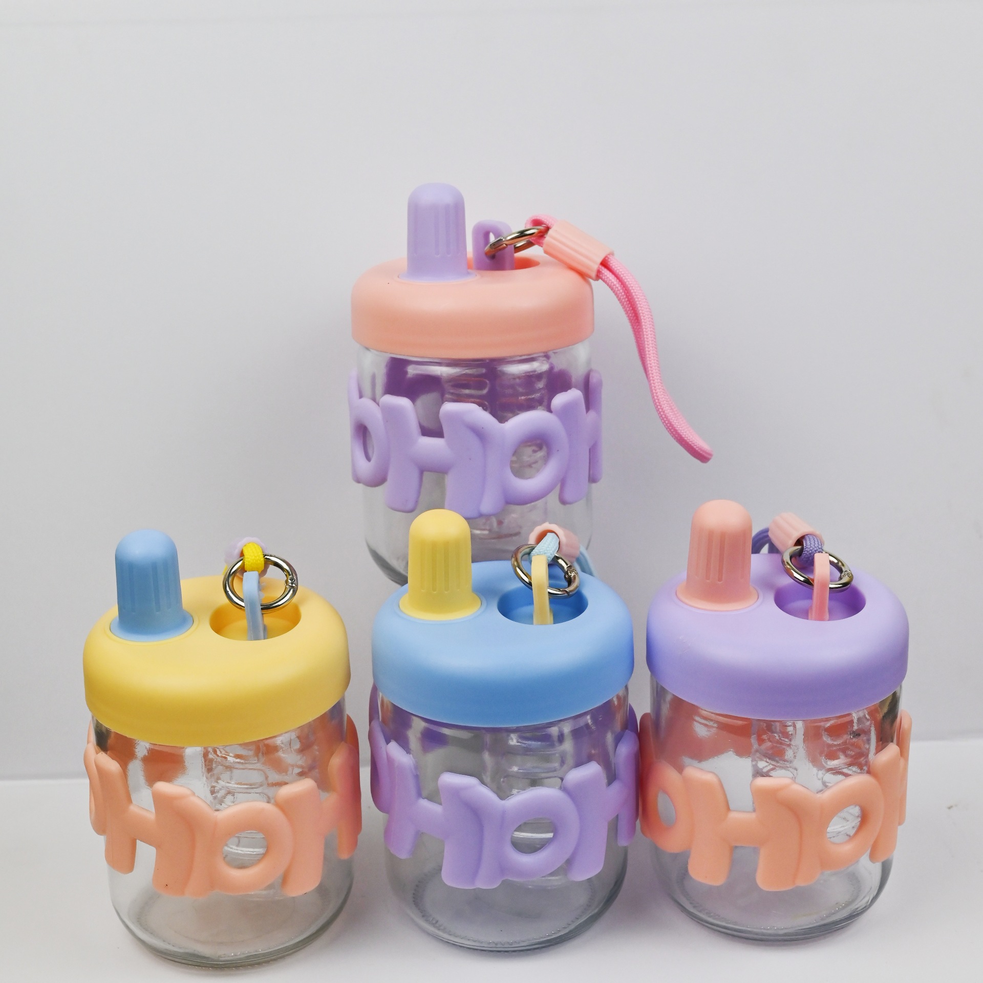 ガラス製水カップ、ダブルストローカップ、コーヒーカップ、携帯用かわいいガラスカップ、高品質子供用ストローガラスボトル