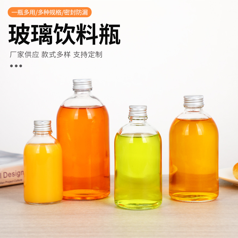 円形ガラス密封飲料瓶多規格ミルクティー瓶ジュース瓶ガラス密封瓶コーヒー冷飲店外付け