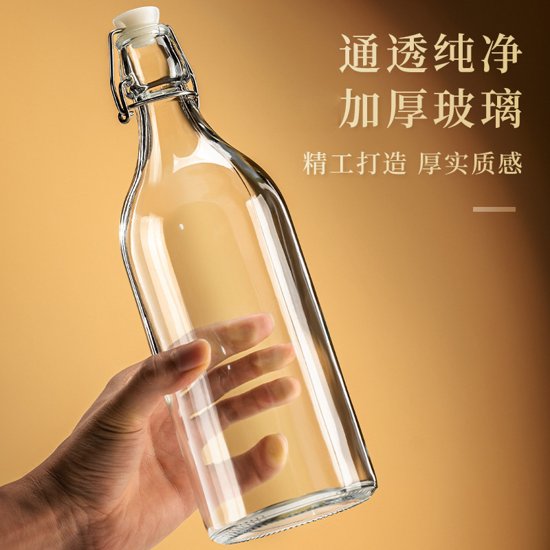 卸売バックル酵素ガラス瓶厚い透明ジュースガラス飲料瓶風味飲料ヨーグルト瓶果実酒瓶