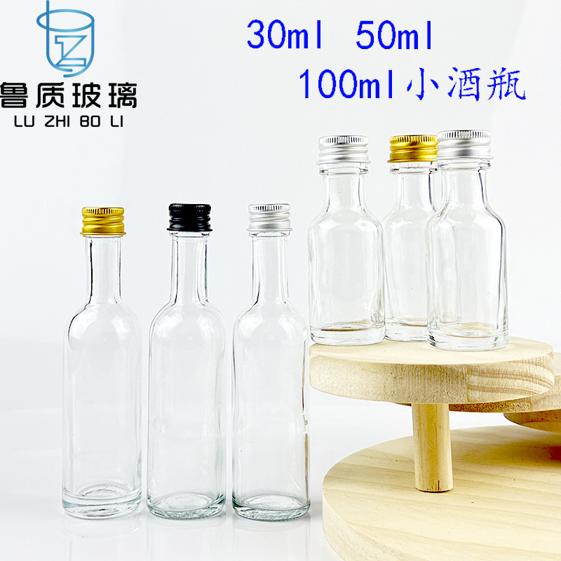 卸売り食品級透明トランペットガラス瓶50mlオリーブ油試用分注瓶30ml白酒空瓶