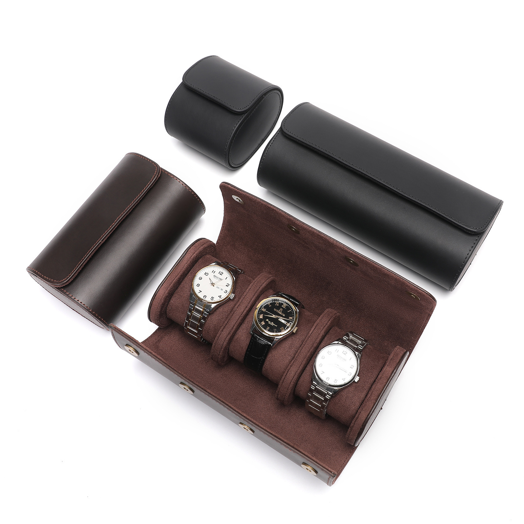 工場価格現物トップ層真牛皮大磁気ボタン腕時計収納ケース1-3表位旅行時計腕時計ケース