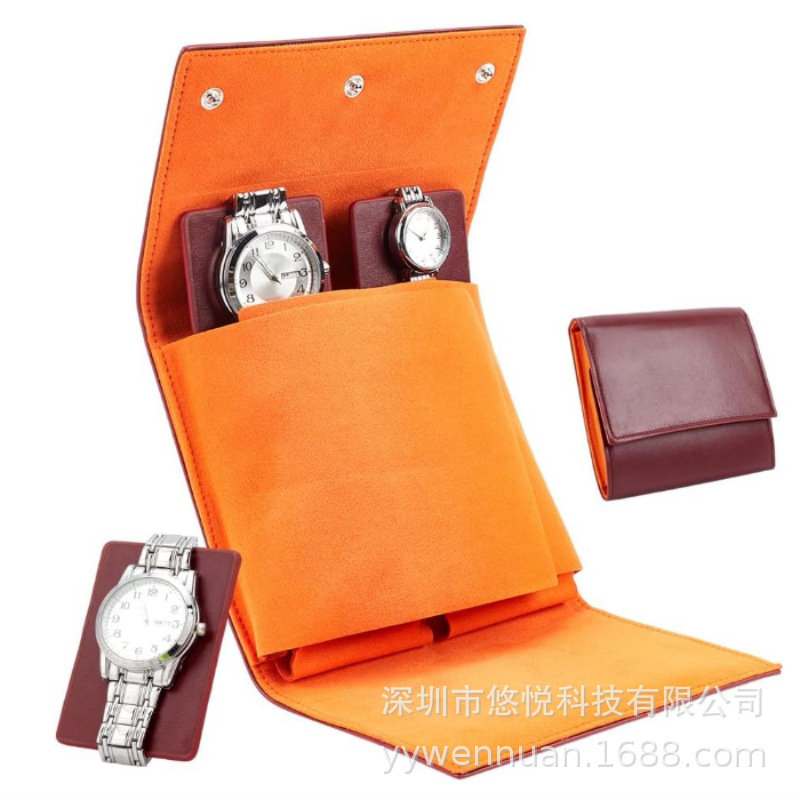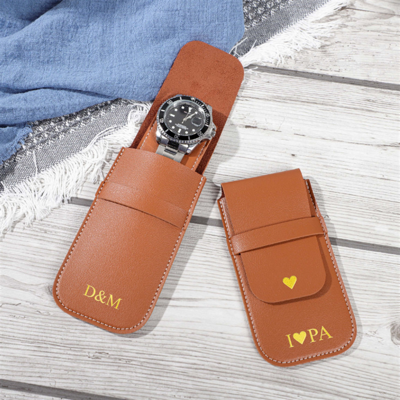 現物純色革腕時計袋カップル対時計防塵収納バッグビジネス出張旅行防転腕時計バッグ