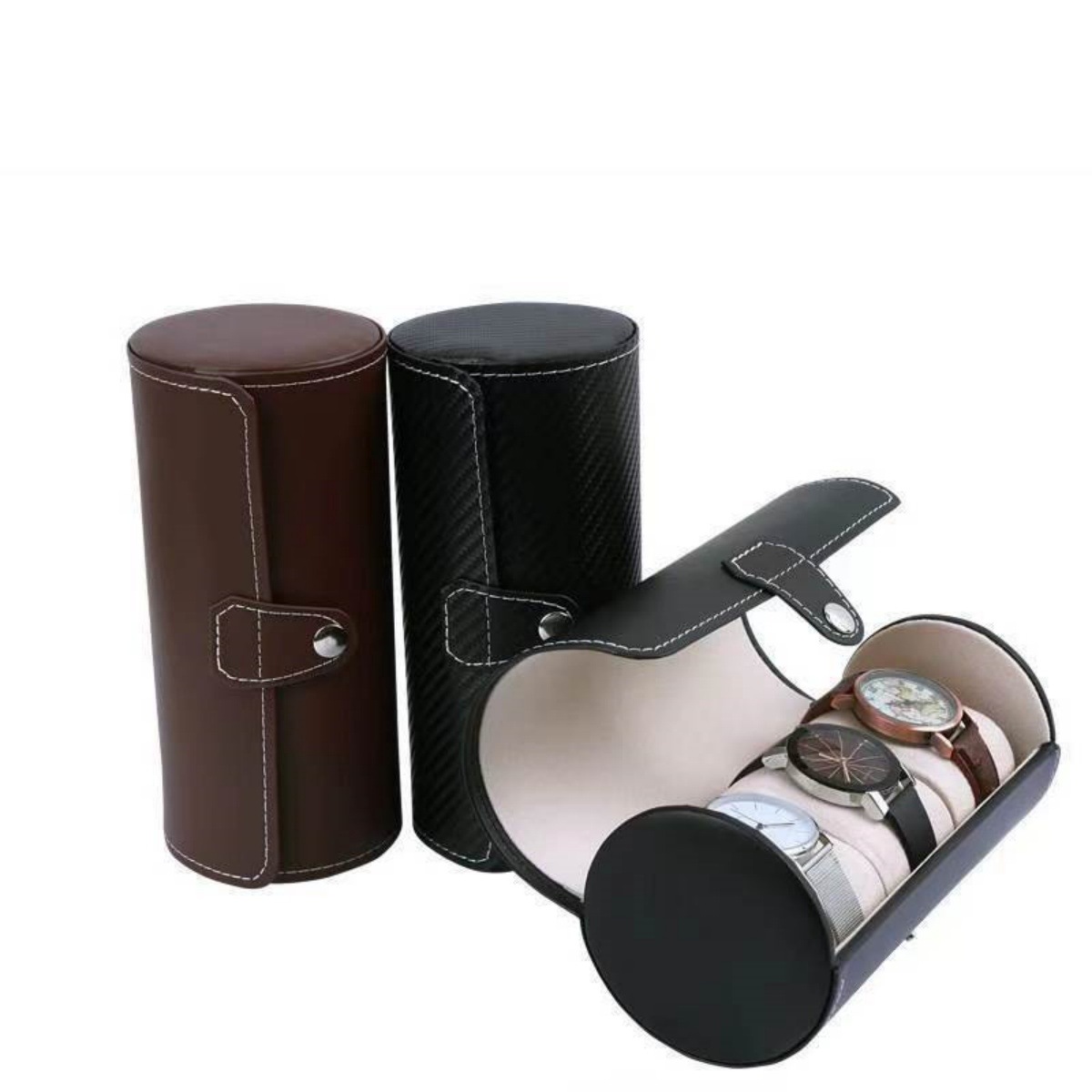 PU革三位円筒腕時計ボックスジュエリー収納ベルベットボタン腕時計収納ボックス工場卸売りスポット