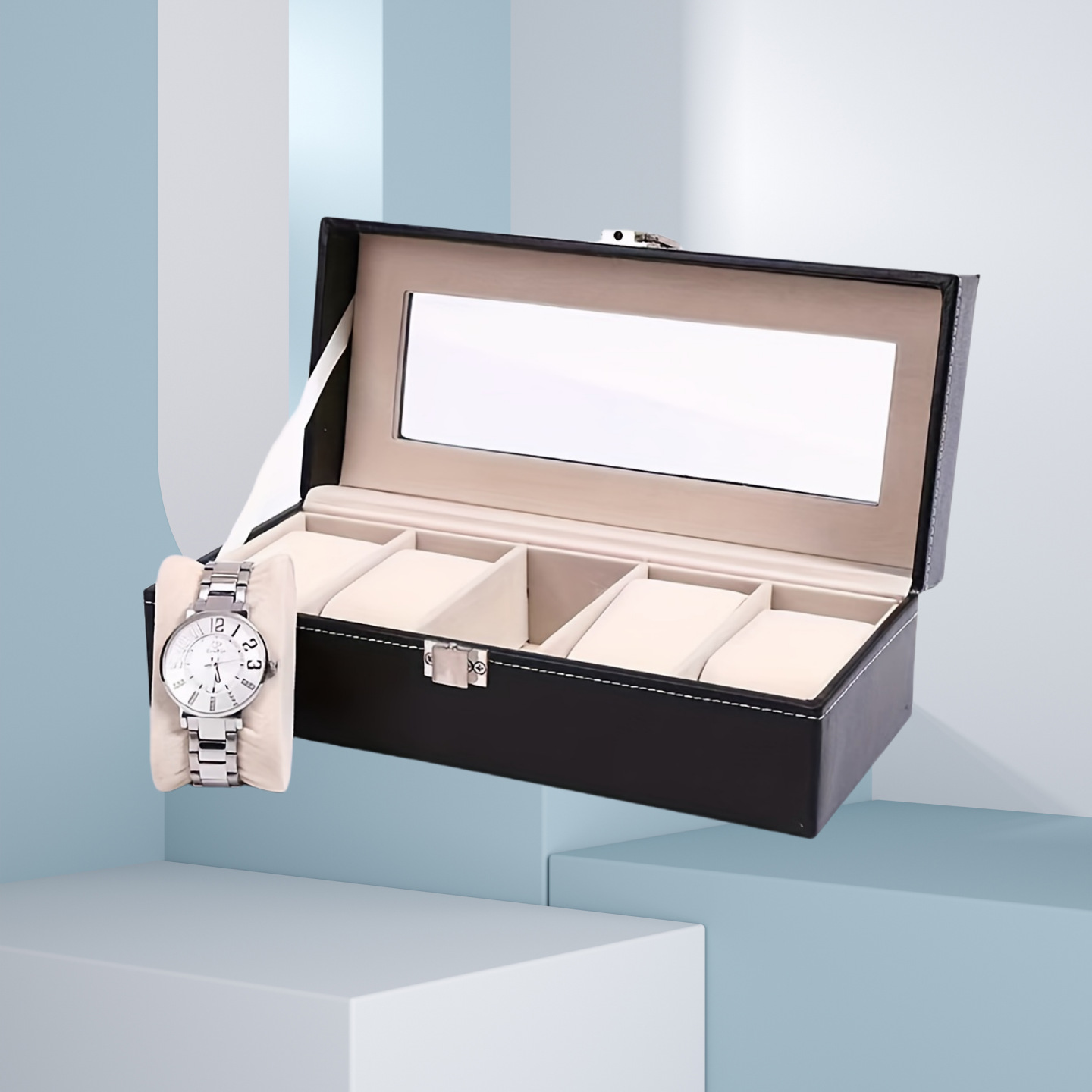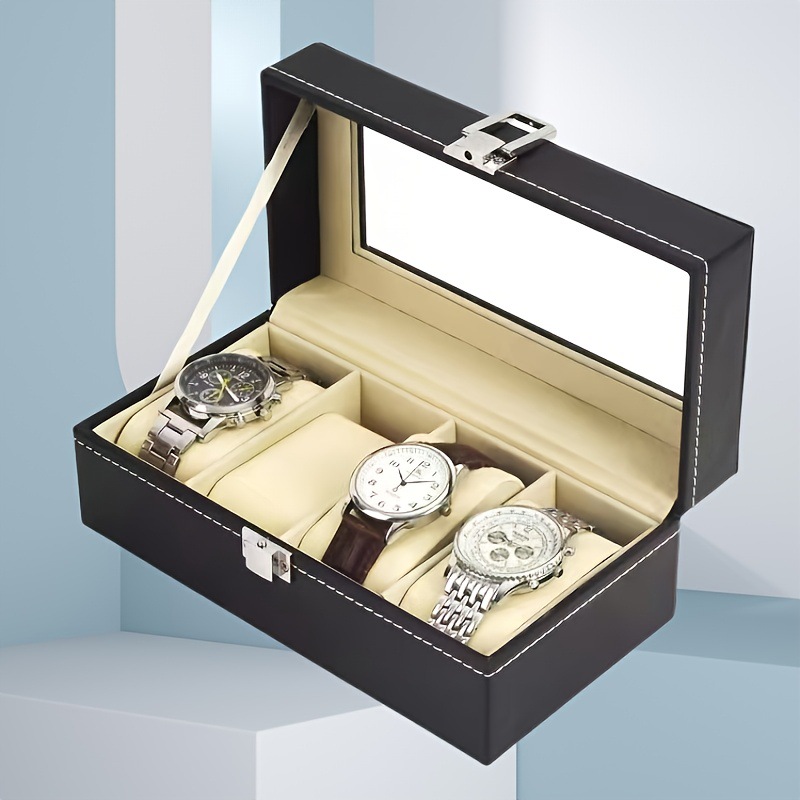 4スロット时计ボックス、高级腕时计収纳ボックス、クリア腕时计ディスプレイボックス、メンズレディース腕时计ストレージ