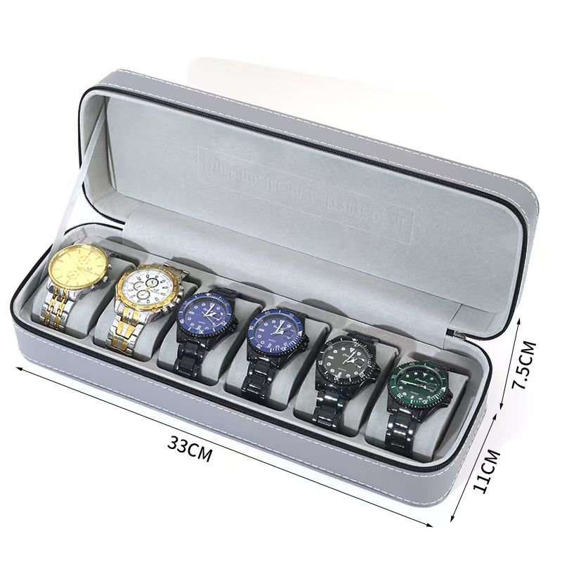 6ビットジッパー腕時計ボックス6ビット腕時計ディスプレイ収納ボックスpu革腕時計ブレスレットディスプレイボックスポータブル耐久性