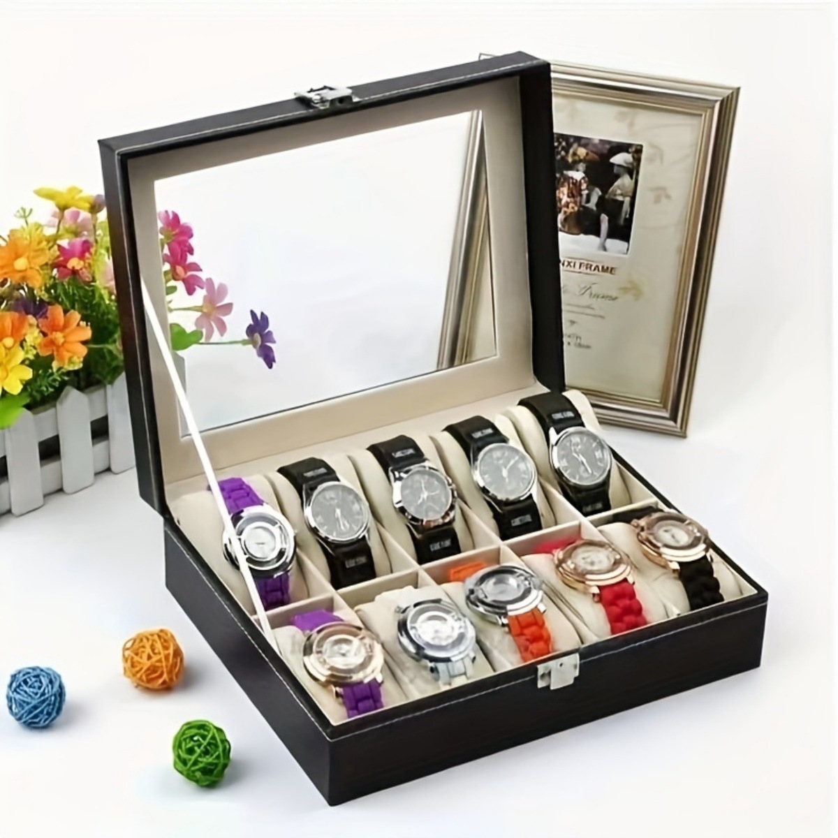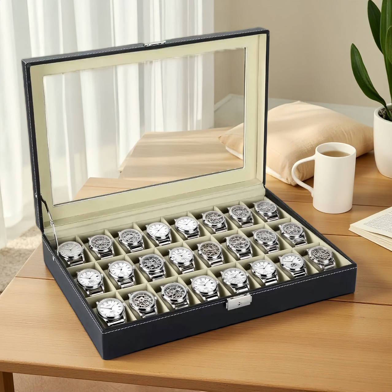 24スロットエレガントブラック腕时计収纳ボックスストレージ展示用,置くことができます腕时计アクセサリー男女适用