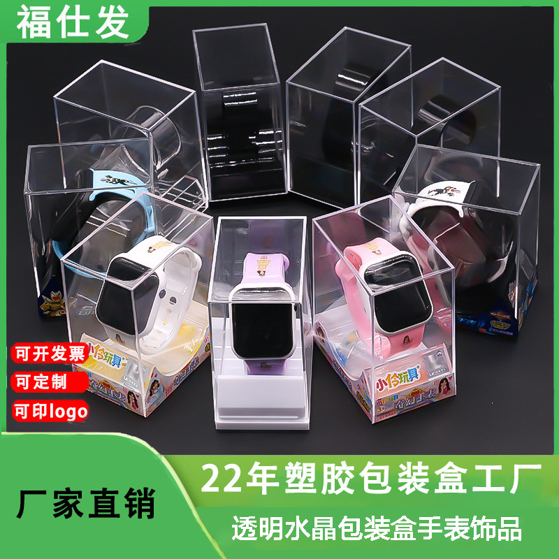 透明な時計ボックス、展示用と吊り下げ用の両用、子供用時計プラスチック包装箱、PS高級クリスタルボックス、時計プラスチック包装