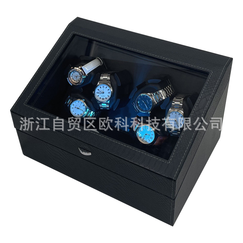 在庫あり、卸売、スネークスキン柄PUレザー、6つの時計収納スペースと6つの時計収納スペースを備えた機械式自動巻きジュエリーケース