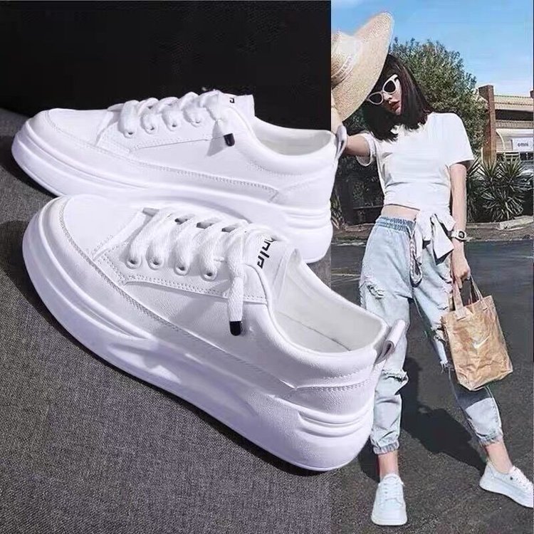 外国貿易の卸売りの運動靴の女性のゴムのpu皮の面の純色のビスケットの底の2022シンプルなファッションのカジュアルな白い靴の女性