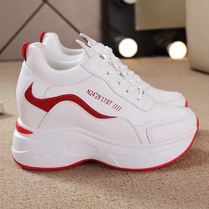 2023夏の新しい厚い底の通気の単里の松餅のお父さんの靴の運動の超ハイヒールの子猫の足の白い靴の女性の靴