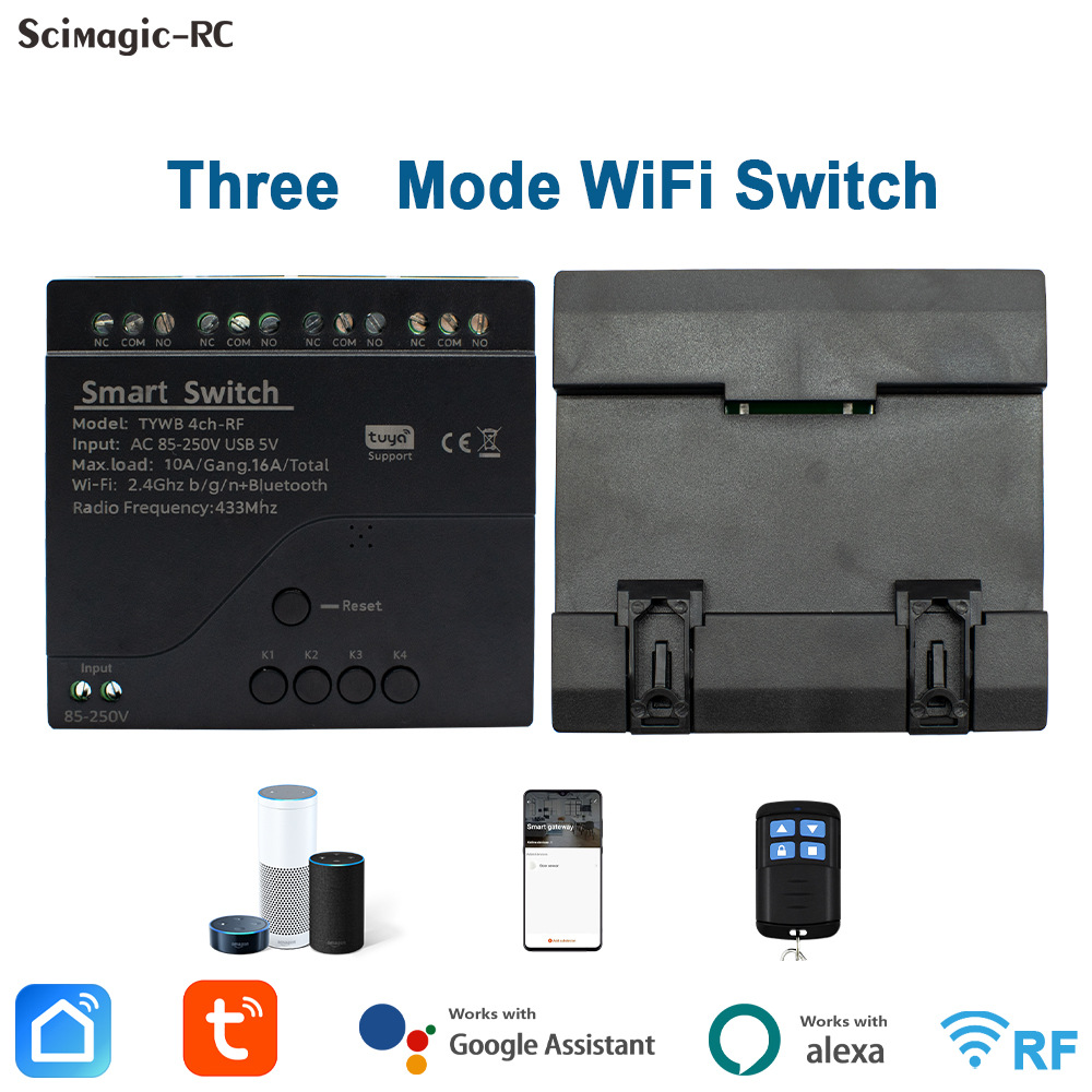 落書き知能開4路WiFi入退室コントローラ点動セルフロック相互ロック遠隔リモコンスイッチ定時433M