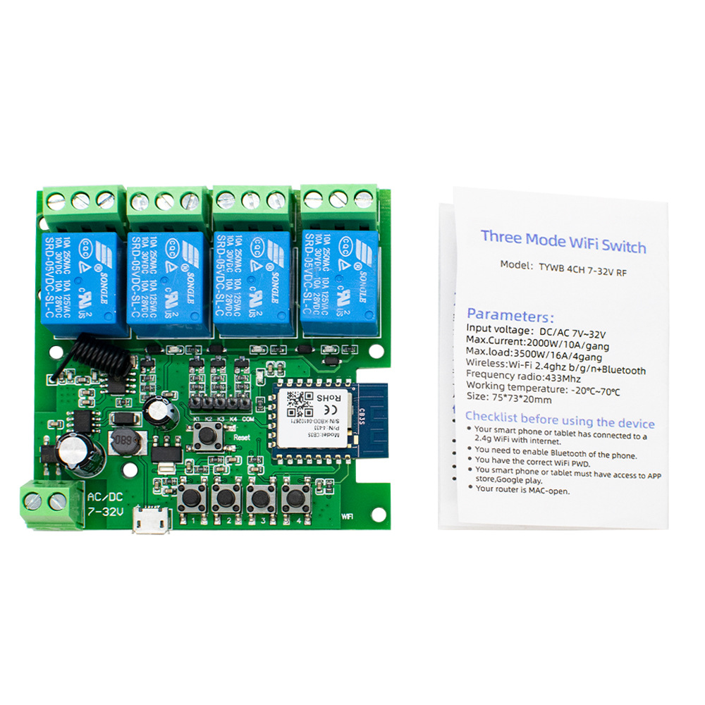 易微連wifiスマートスイッチ点動セルフロックインターロックリモートコントロール4路リレーモジュール7-32v 433