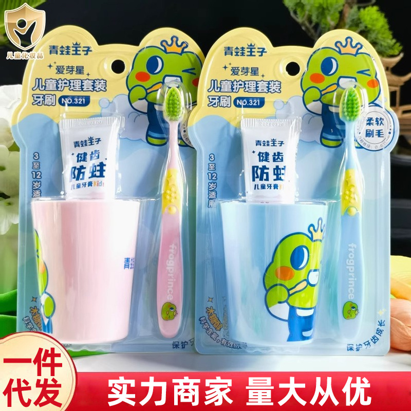 カエルの王子の子供の歯ブラシの歯磨き粉のセットの3-6-12歳の男の子の女の子の柔らかい毛の乳歯の健康な歯の組み合わせの卸売り