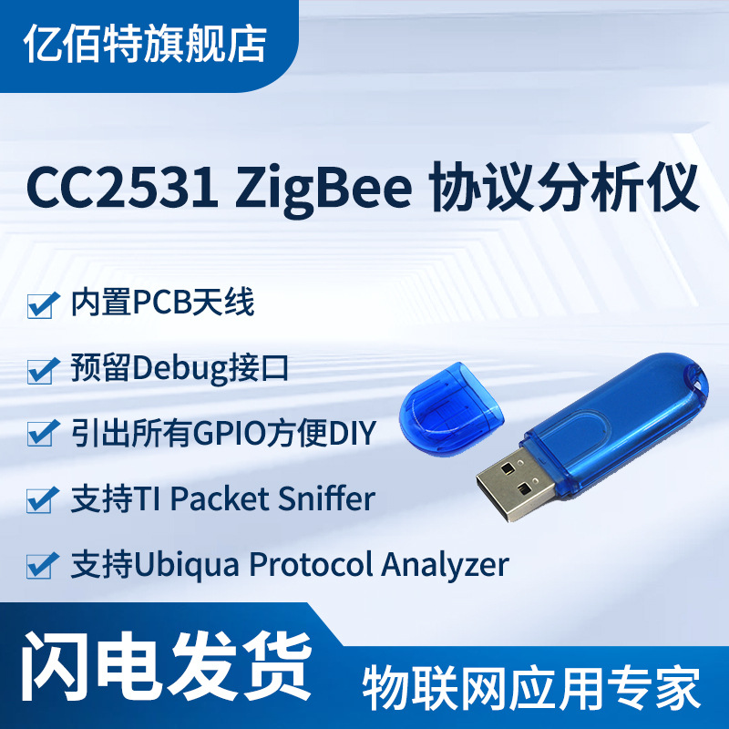 億佰特Zigbeeモジュールの元のCC2531チップは、Packet snifferプロトコル分析USBをサポートしています。