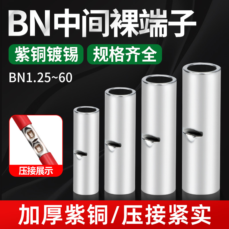 中接続端子突合せ端子BN1.25紫銅管電線接続端子1.5平方