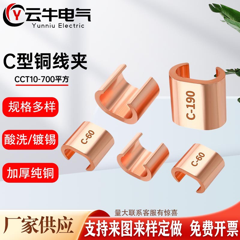 C型銅線クリップ銅線突合せ端子CCT10-700銅線耳C型銅継手貫通線コネクタ