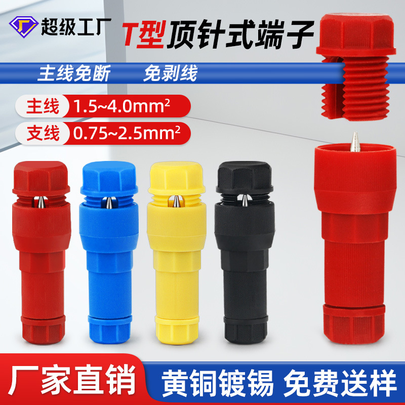 T型ノーピーリング・ノン配線クイックコネクタ ピアス式分岐バレル端子 端子台 トビネジ端子台