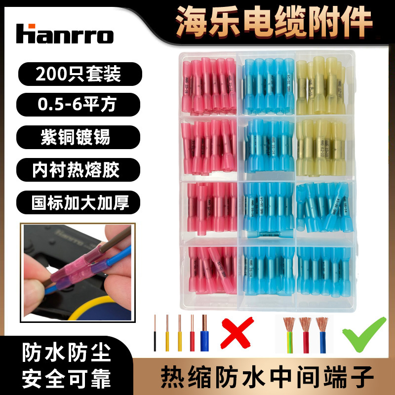BHT热缩防水中间接头套装电线对接端子冷压紫铜管电线保护改装