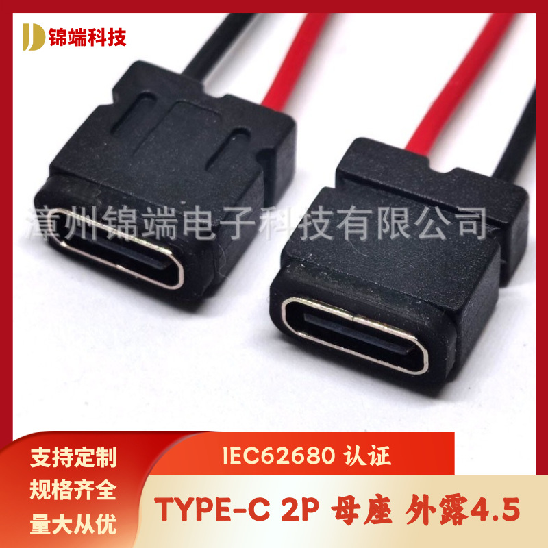 タイプ C メスソケット 2Pin はんだ付けワイヤー防水 IP64 ワイヤー露出 1.75 充電ポートシンプルバージョンサポートカスタマイズ