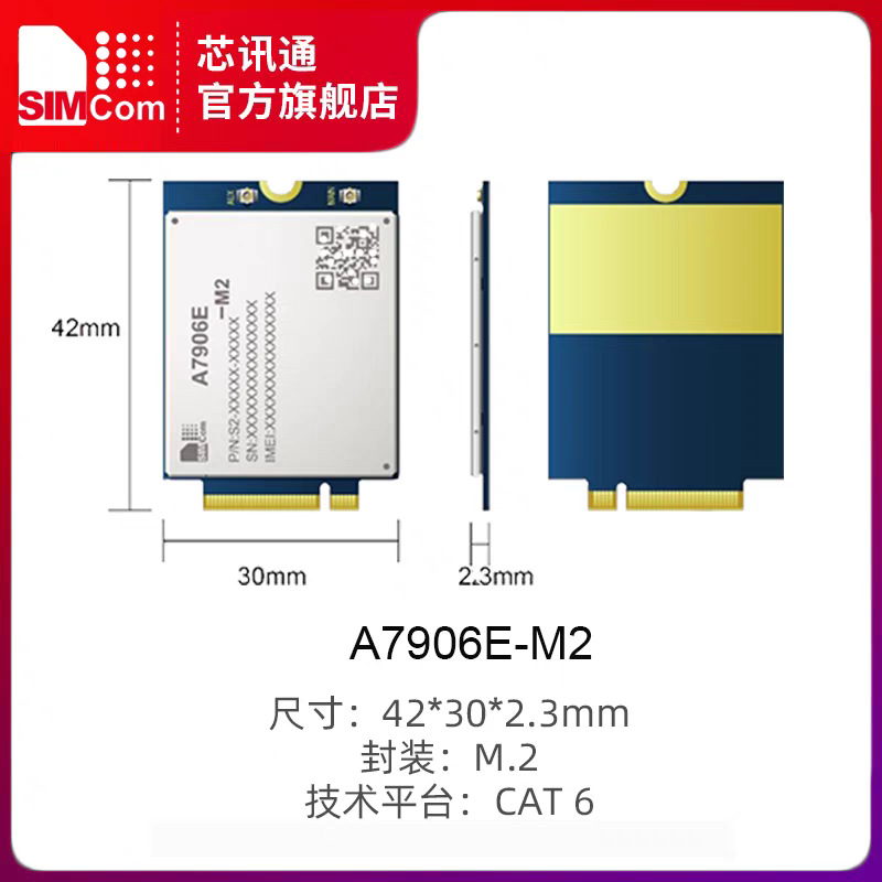芯讯通A7906E-M2中国欧洲4GLTE高速 M.2NGFF接口无线通讯模块网关