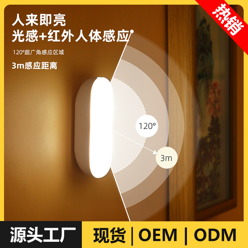 授乳中のママのためのナイトライト、光センサー付きスマートセンサー、寝室・寮用ナイトライト、磁気吸着式ベッドサイド充電式、暖色系、目に優しい
