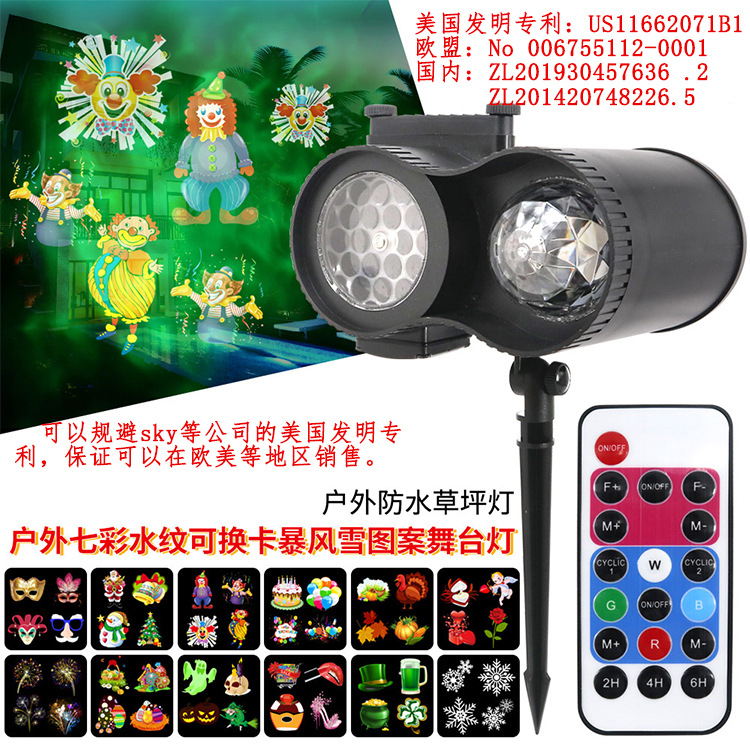 メーカー直販防水リモコン12カードパターン水紋吹雪万聖投影灯芝生水紋ダブルダウンライト