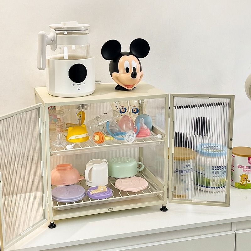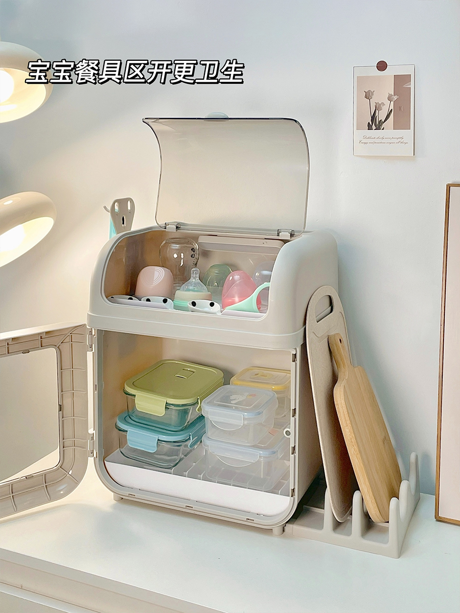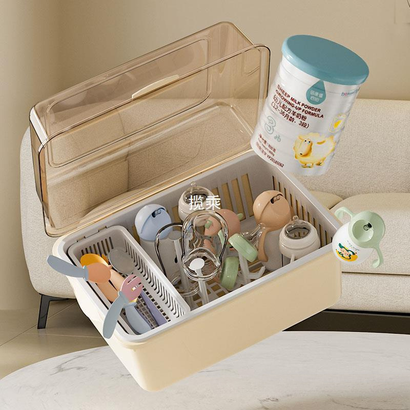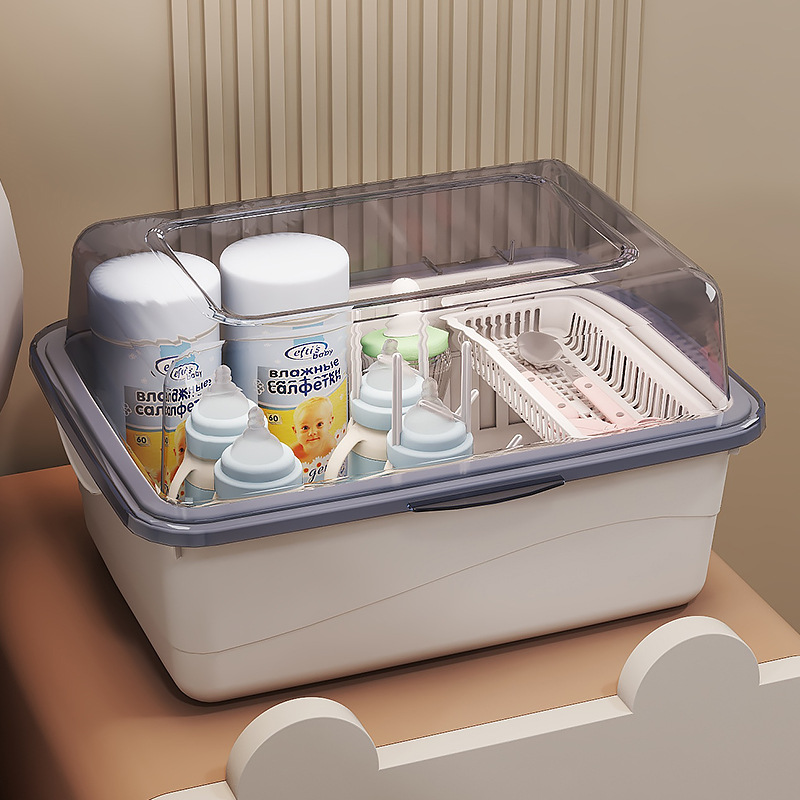 大型食器ベビー用品カバー付きベビー防塵収納ボックス排水ラック補助食品ボトル収納ボックスベビー
