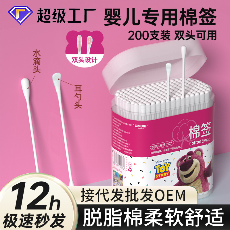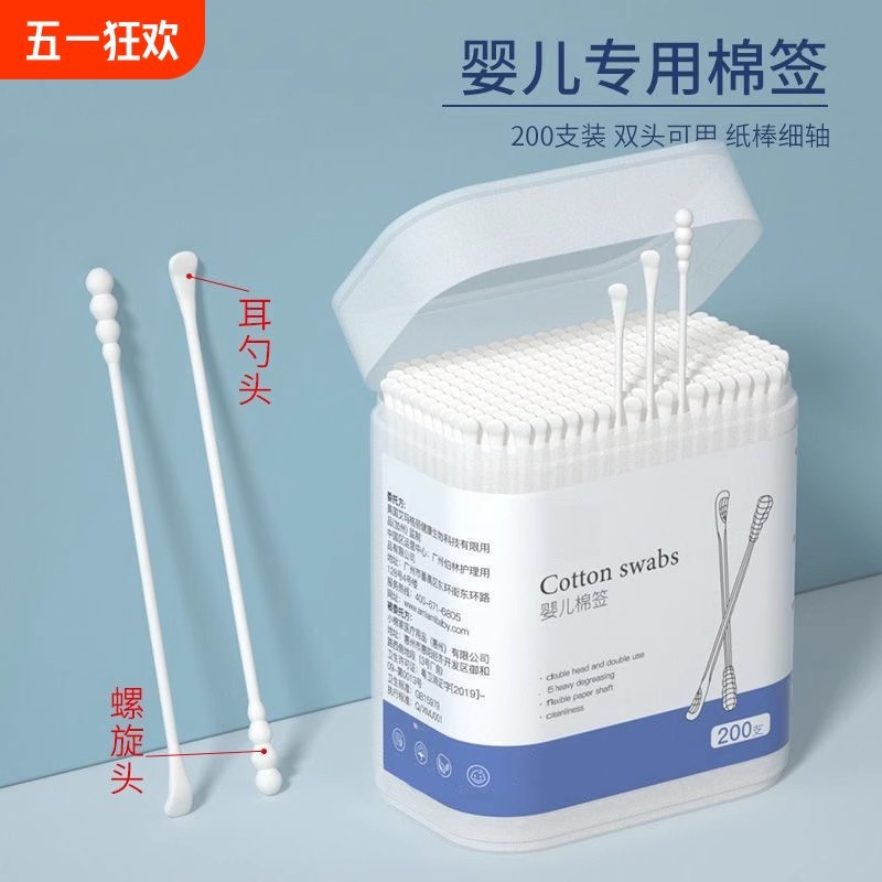 赤ちゃん専用綿棒使い捨て二頭200本ケース新生児耳鼻清潔綿棒卸売り