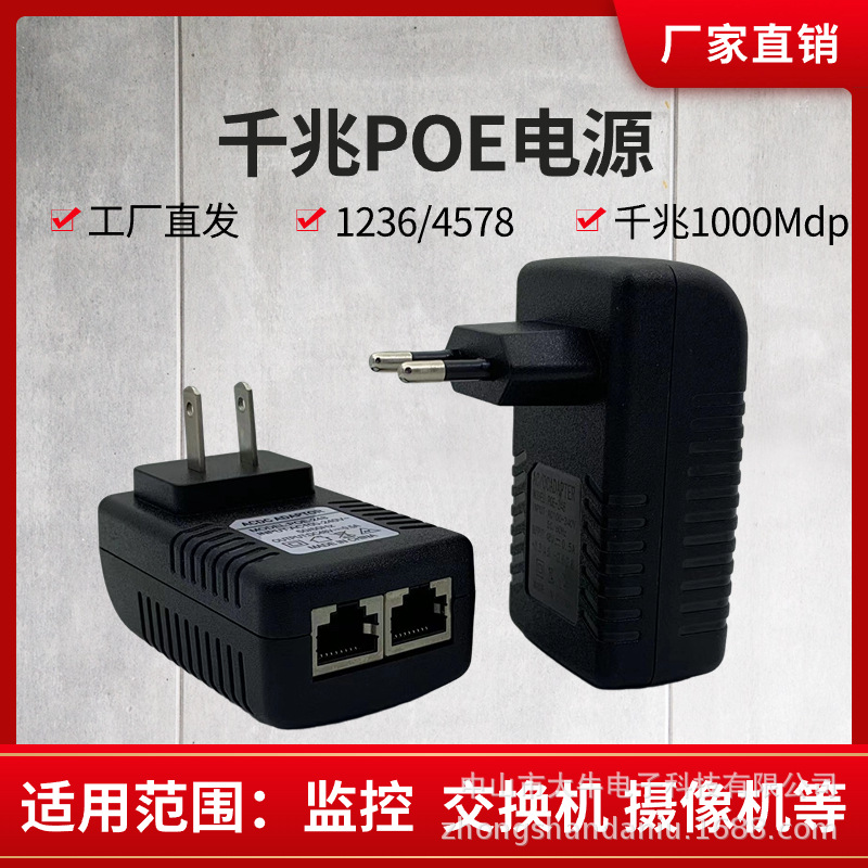 ギガpoe電源48v0.5a/24v1a無線apブリッジ監視ボール機給電4芯8芯通信電源